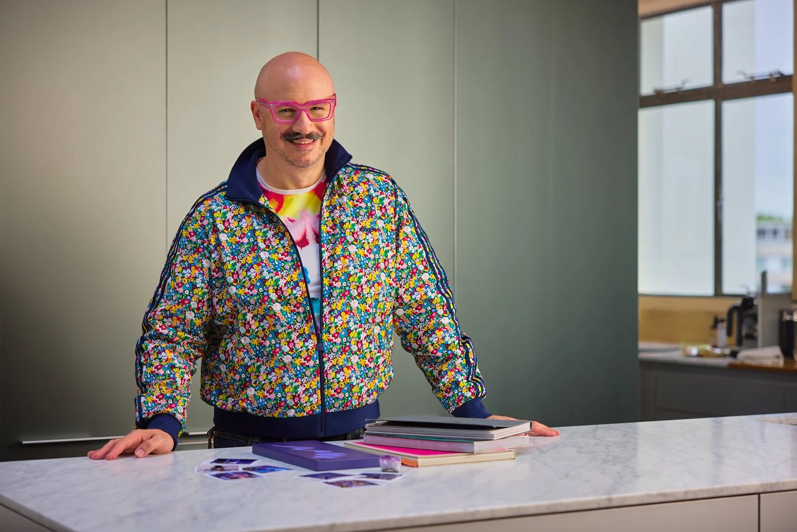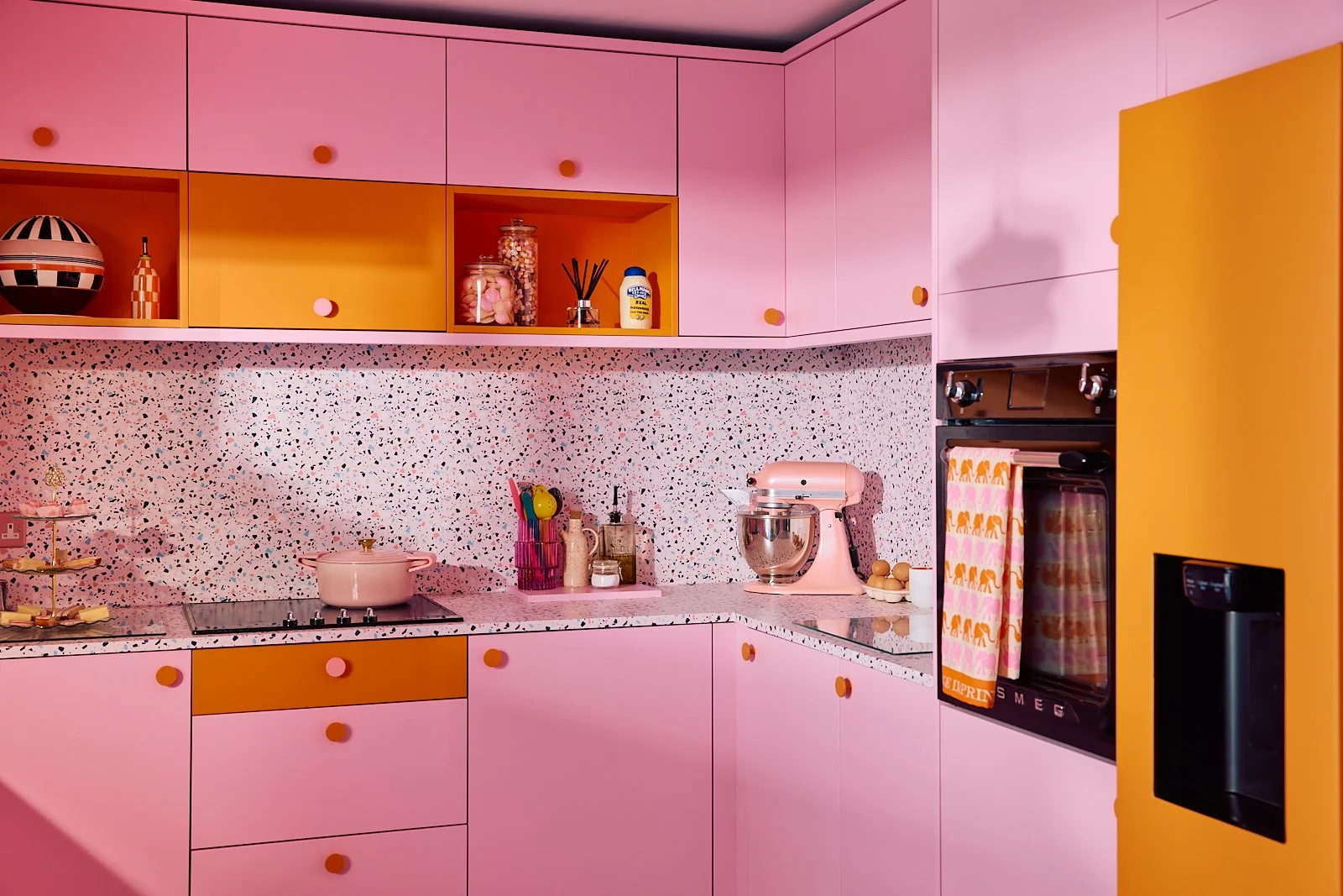 Dom’s old kitchen didn’t work for him. It was navy blue, short on storage, and just no fun. So, together with the team at Smile, he designed his dream kitchen inspired by playful childhood memories and full of big, bold colours.